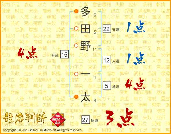 多田野一太さんの天運は22画の1点!