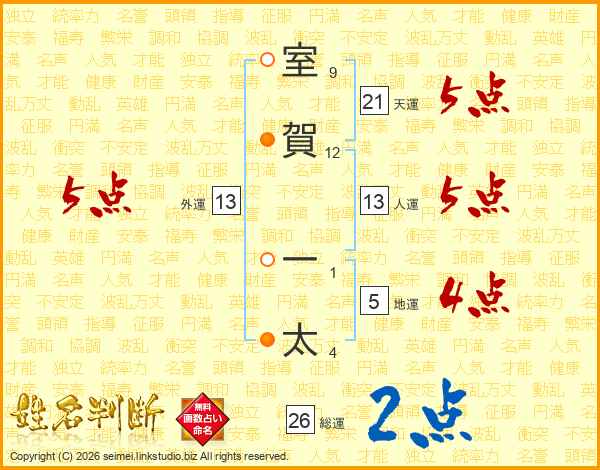 室賀一太さんの天運は21画の5点!