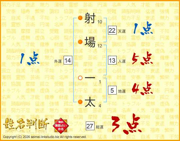 射場一太さんの天運は22画の1点!