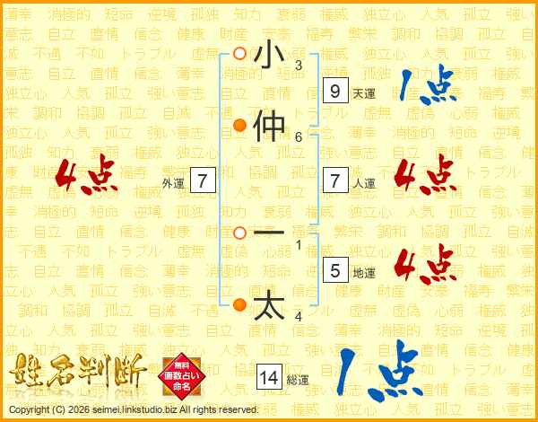 小仲一太さんの総運は14画の1点!