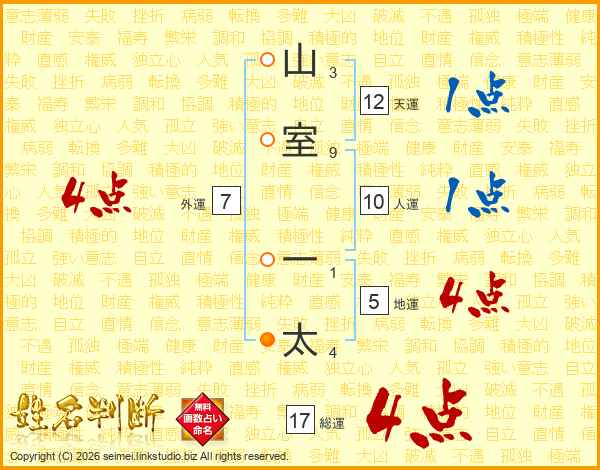 山室一太さんの総運は17画の4点!