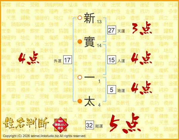 新實一太さんの総運は32画の5点!