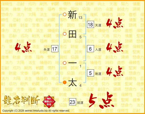 新田一太さんの総運は23画の5点!