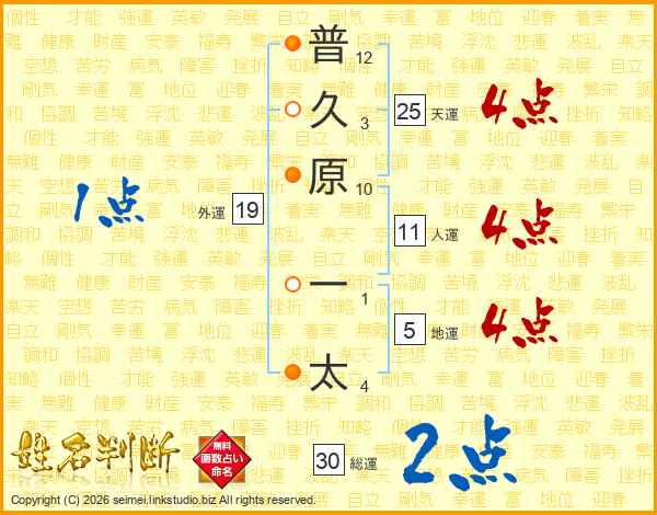 普(12画)久(3画)原(10画) 一(1画)太(4画)