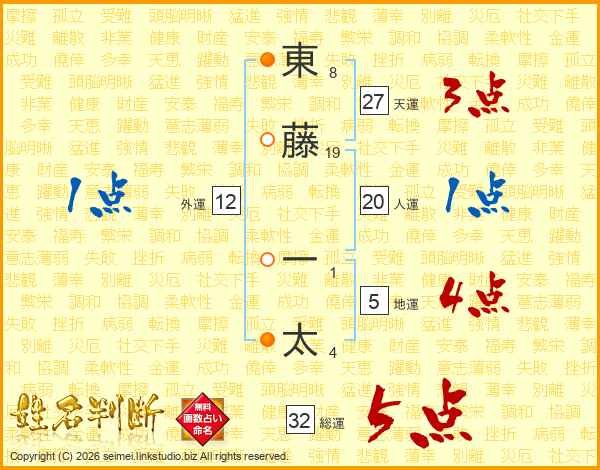 東藤一太さんの総運は32画の5点!