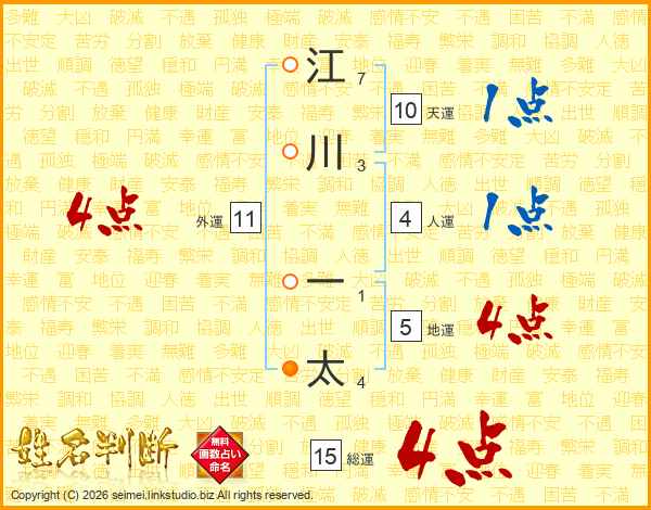 江川一太さんの総運は15画の4点!
