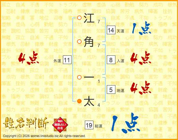江角一太さんの総運は19画の1点!