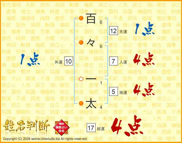 百々一太さんの人運は7画の4点!
