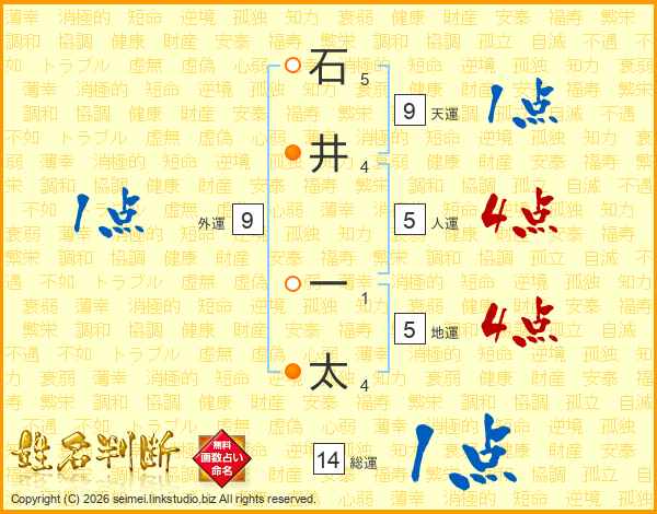 石井一太さんの総運は14画の1点!