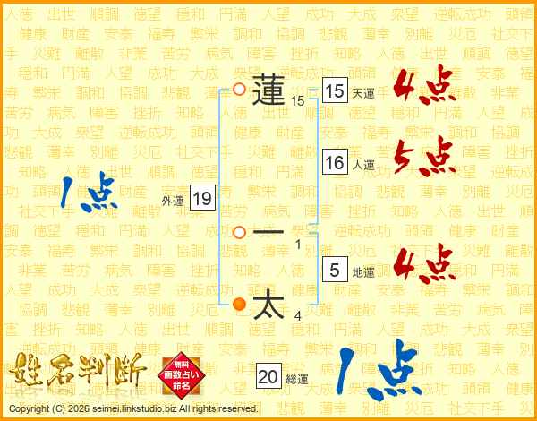 蓮一太さんの総運は20画の1点!
