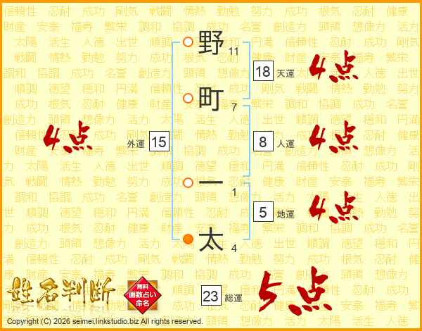 野町一太さんの総運は23画の5点!