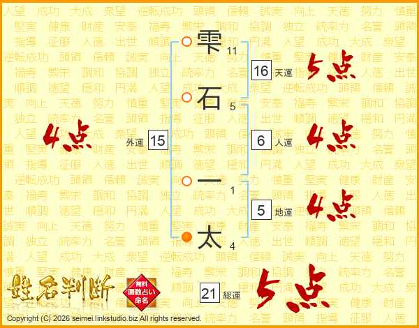 雫石一太さんの総運は21画の5点!