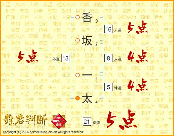 香坂一太さんの総運は21画の5点!