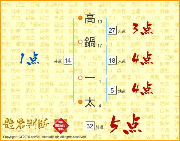 高鍋一太さんの総運は32画の5点!