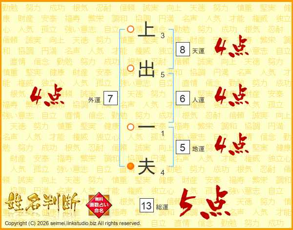 上出一夫さんの総運は13画の5点!