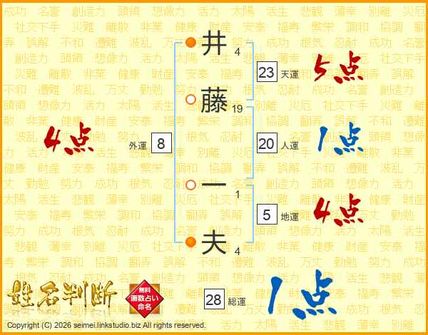 井(4画)藤(19画) 一(1画)夫(4画)