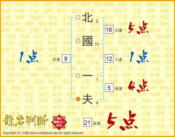 北國一夫さんの総運は21画の5点!