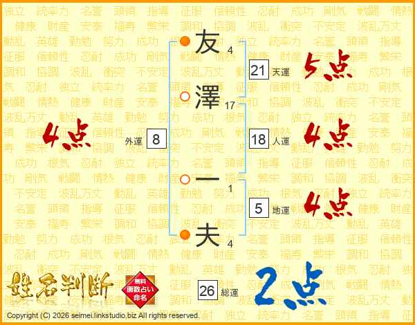 友澤一夫さんの天運は21画の5点!