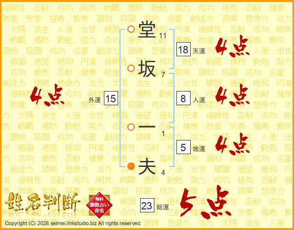 堂(11画)坂(7画) 一(1画)夫(4画)