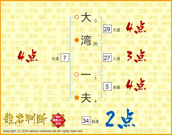 大湾一夫さんの総運は34画の2点!