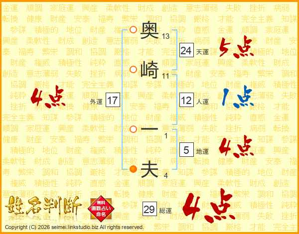 奥崎一夫さんの総運は29画の4点!