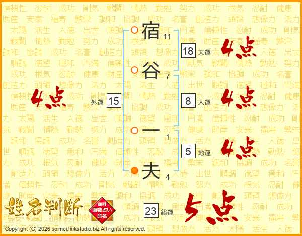 宿谷一夫さんの総運は23画の5点!