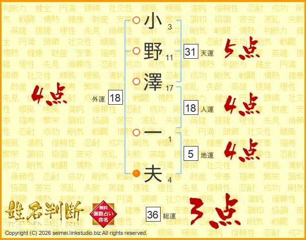 小野澤一夫さんの天運は31画の5点!