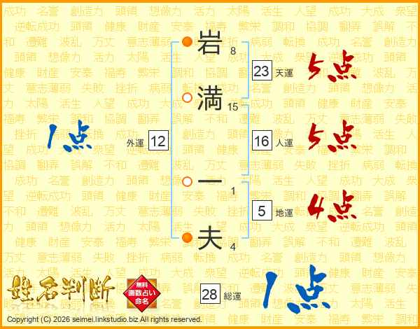 岩満一夫さんの総運は28画の1点!