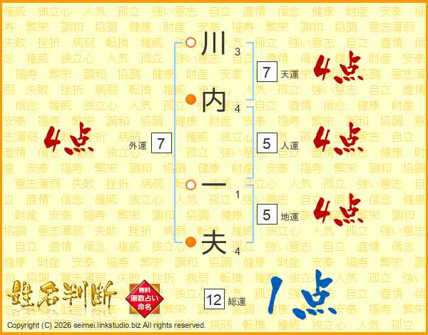 川内一夫さんの総運は12画の1点!