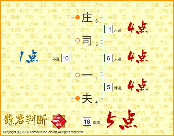庄司一夫さんの総運は16画の5点!