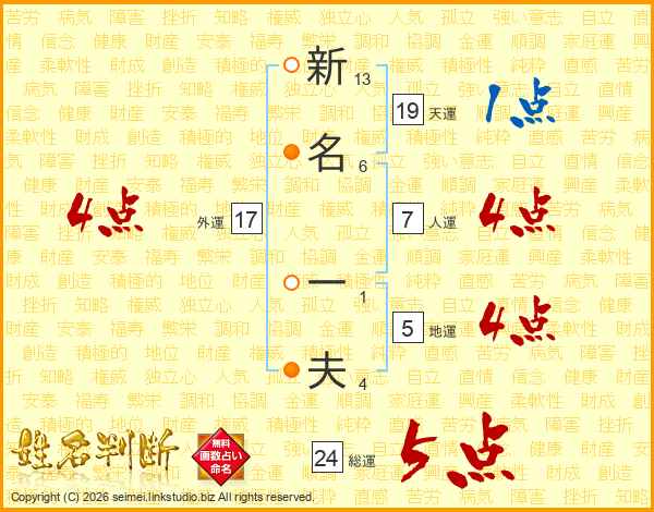 新名一夫さんの人運は7画の4点!