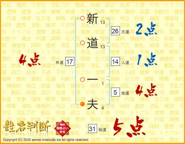 新道一夫さんの総運は31画の5点!