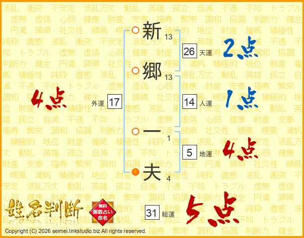 新郷一夫さんの総運は31画の5点!