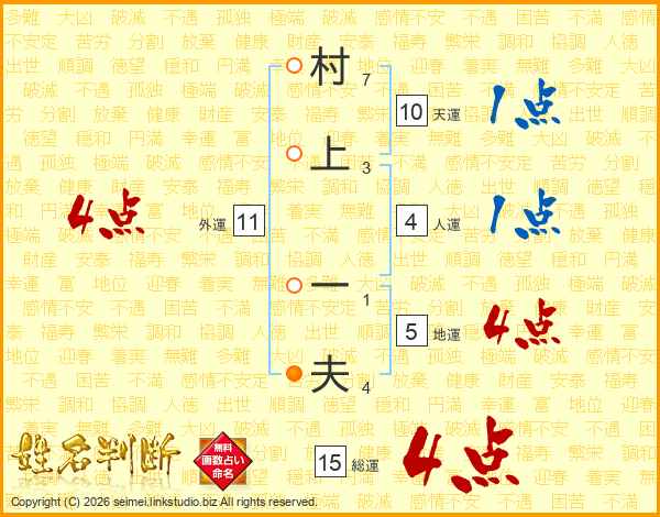 村上一夫さんの総運は15画の4点!