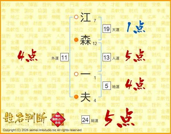 江森一夫さんの総運は24画の5点!