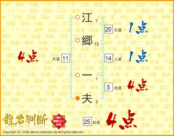 江郷一夫さんの総運は25画の4点!