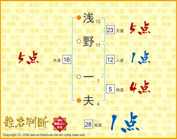 浅野一夫さんの天運は23画の5点!