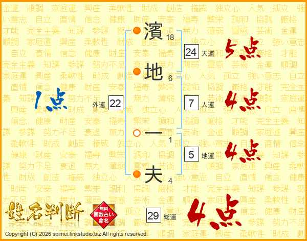 濱地一夫さんの総運は29画の4点!