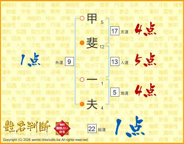 甲(5画)斐(12画) 一(1画)夫(4画)