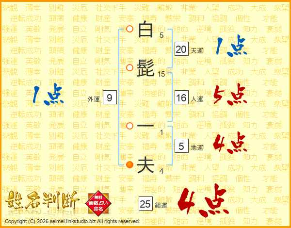 白髭一夫さんの総運は25画の4点!
