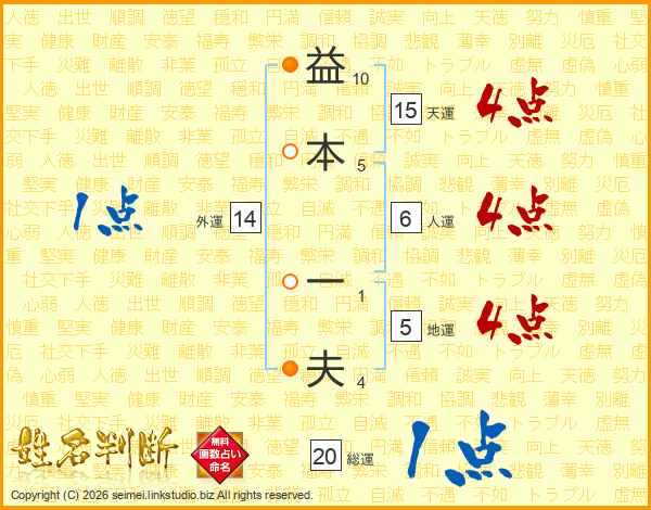 益本一夫さんの総運は20画の1点!