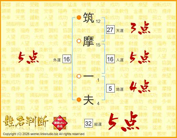 筑摩一夫さんの総運は32画の5点!