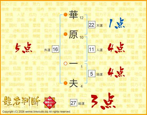 華(12画)原(10画) 一(1画)夫(4画)