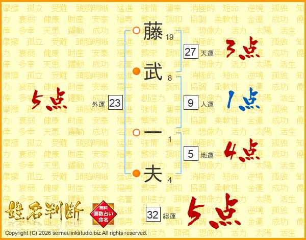 藤武一夫さんの総運は32画の5点!