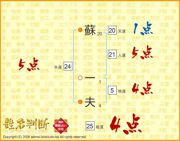 蘇一夫さんの総運は25画の4点!
