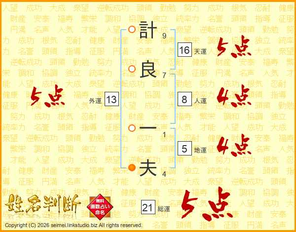 計良一夫さんの総運は21画の5点!