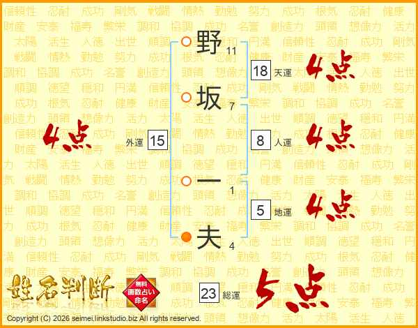 野坂一夫さんの天運は18画の4点!