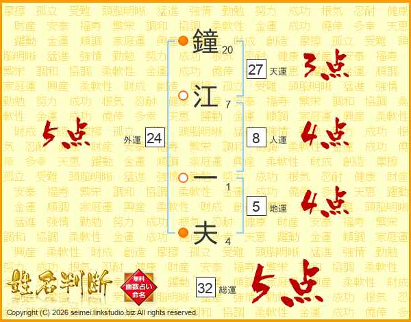 鐘(20画)江(7画) 一(1画)夫(4画)