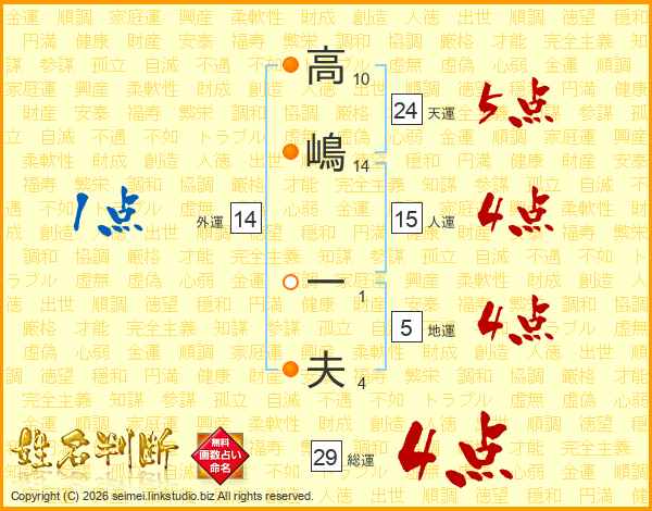 高(10画)嶋(14画) 一(1画)夫(4画)