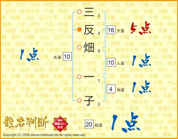 三反畑一子さんの天運は16画の5点!